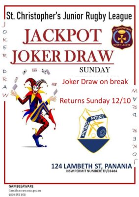 Come down and watch Alexie Pigot live from 3pm-6pm tomorrow and also enough our Members Badge Draw, St. Christopher's Saints JRLFC Jackpot Joker Draw, Club Limited Raffle